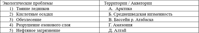 Установите соответствия между экологическими проблемами и территориями или акваториями, для которых они наиболее характерны