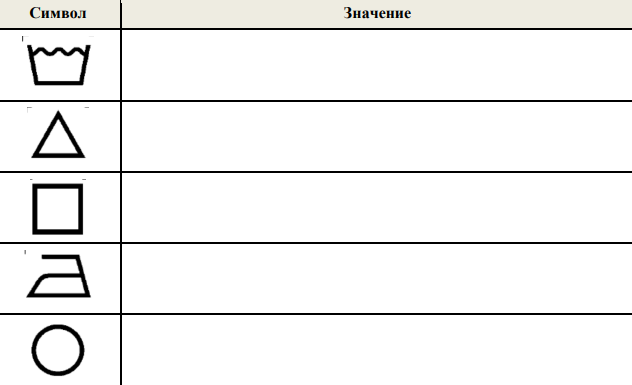 Задание 2. В межгосударственном стандарте, установлены пять основных символов по уходу за текстильными изделиями. Напишите, что они обозначают?