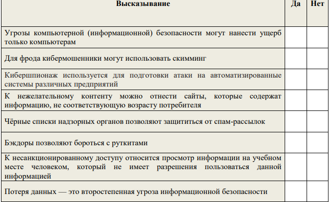 МОДУЛЬ 2. Заполните таблиц, указав только один из предложенных вариантов.