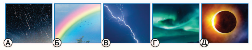 5. Глядя на небо, мы часто наблюдаем различные природные явления. Найдите картинку с изображением солнечного затмения.
