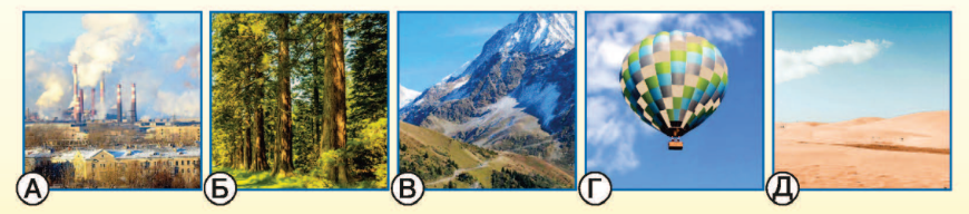 6. В воздухе, которым мы дышим, содержится кислород, причём в разных местах содержание кислорода в воздухе неодинаково. На какой картинке изображено место с самым большим содержанием кислорода?