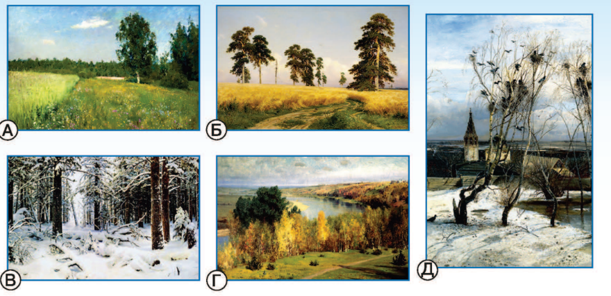 13. На картинах русских художников: А.К. Саврасова, В.Д. Поленова, И.И. Левитана и И.И. Шишкина изображены разные времена года. На какой Какой картине один из этих художников нарисовал зиму?