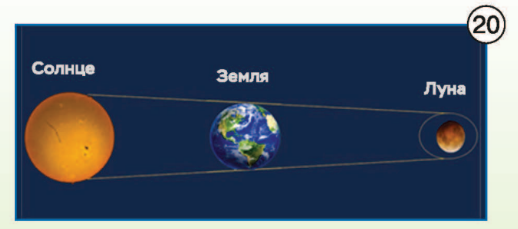20. Какое явление происходит, когда Солнце, Земля и Луна располагаются в таком порядке, как показано на картинке?