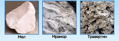 24. Что объединяет эти горные породы? (Мел, Мрамор, Травертин)