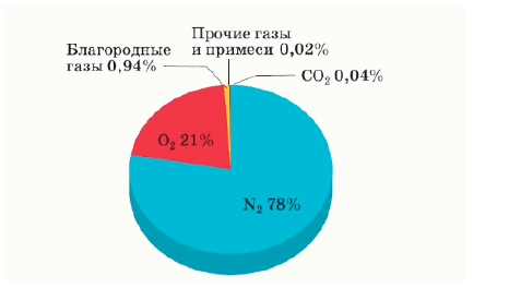Задание 9. На картинке приведена диаграмма, описывающая состав сухого воздуха в объёмных процентах.