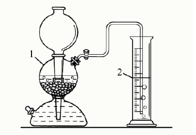 Задание 6-7. В аппарат Киппа (на рис. показан цифрой 1) поместили кусочки мрамора и залили соляную кислоту. Выделился газ X, который пропустили в цилиндр с дистиллированной водой (на рисунке показан цифрой 2).