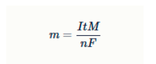 M — молярная масса металла, г/моль F ≈ 96500 Кл/моль — постоянная Фарадея n — количество электронов, участвующих в восстановлении иона металла до металла.