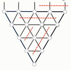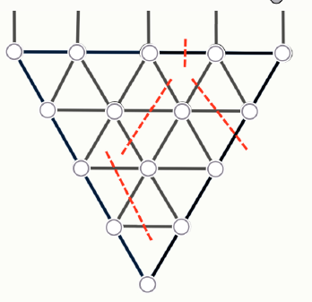 6.3. Вася нашёл бабушкино жемчужное ожерелье, которое висело так, как показано на рисунке справа. Он взял ножницы и разрезал часть нитей, как показано на рисунке внизу. Какая жемчужина теперь висит ниже всех?