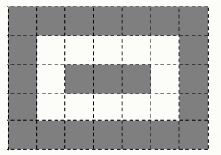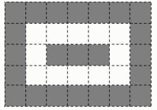 Задание 2. Вася взял белый прямоугольник 36 × 45 и начал его красить: каёмку толщиной в 1 клетку — в чёрный цвет, следующую каёмку он оставил белой, затем — снова чёрная каёмка и т. д. На рисунке показан аналогичный прямоугольник 5 × 7. Найдите разность количества чёрных и белых клеток в Васином прямоугольнике.
