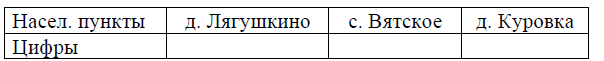 Задание 3. Найдите расстояние от деревни Куровки до села Вятского по прямой. Ответ дайте в километрах.