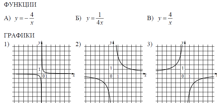 Задание 11. Установите соответствие между функциями и их графиками.
