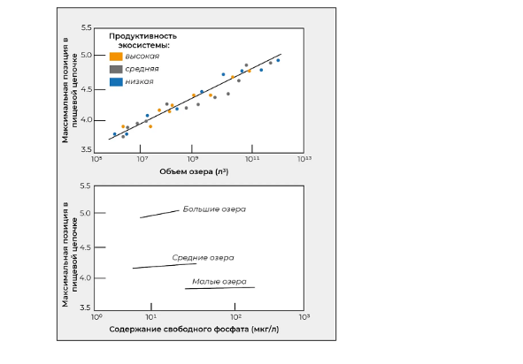 Длина пищевой цепочки увеличивается при увеличении размера экосистемы и повышении её продуктивности