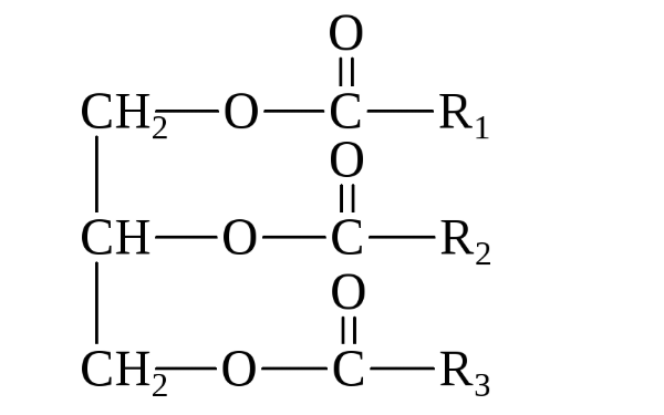 3. В условиях дефицита соединений фосфора в почве в растениях отмечается накопление триацилглицеридов (ТАГ). При длительном голодании по почвенному фосфату содержание ТАГ в побеге растения может увеличиться в 20 раз, а в корне − в 13 раз! На изображении показана структурная формула триацилглицерида, где на месте R1, R2 и R3 располагаются остатки жирных кислот.
